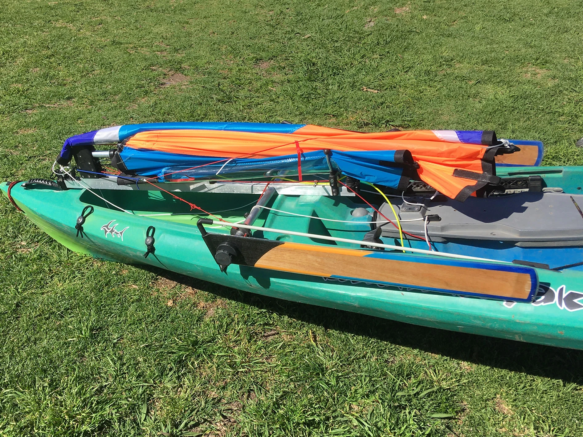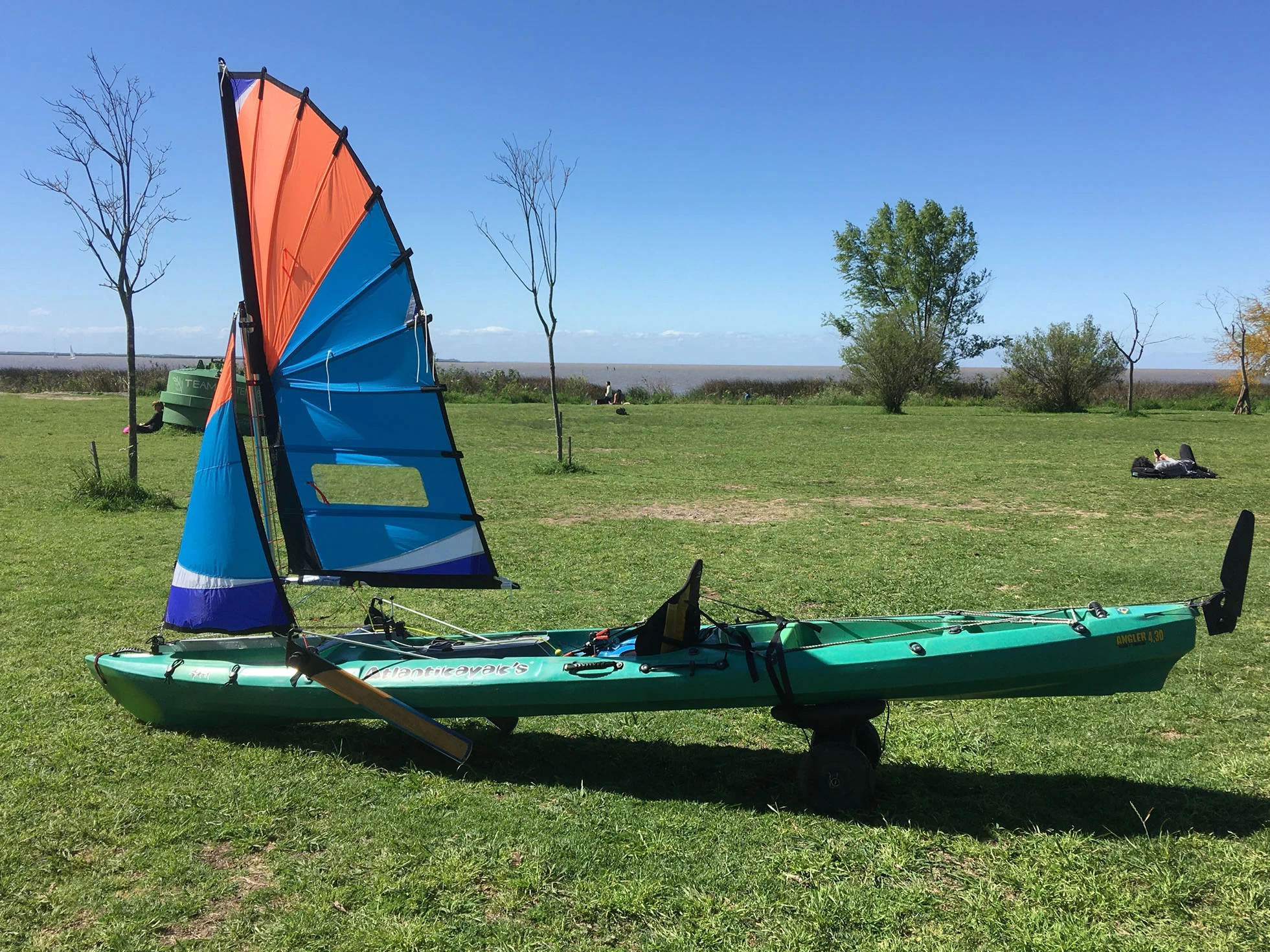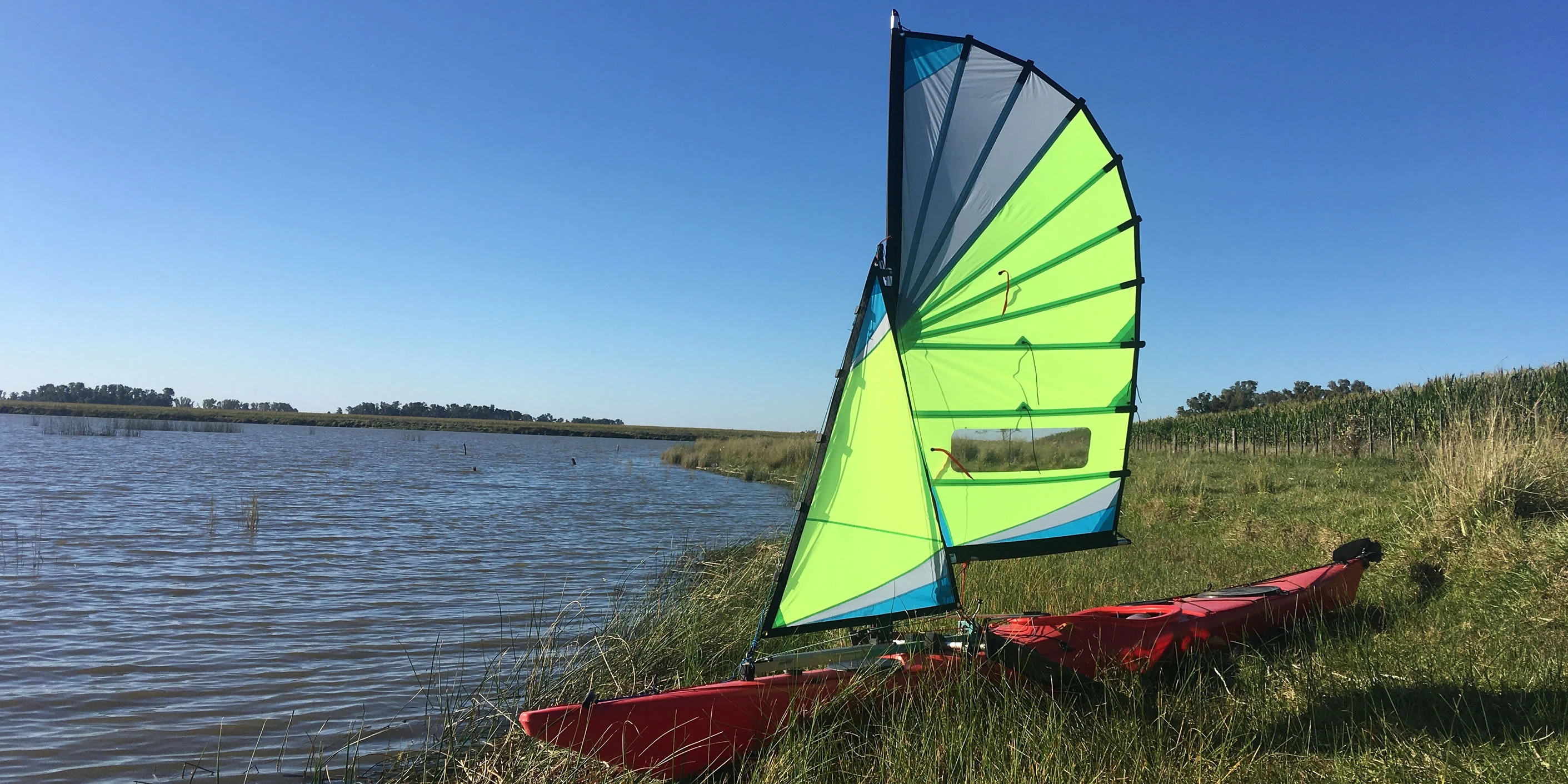 Sistema de vela y aparejo retráctil para embarcaciones de remo.Fácilmente adaptable a cualquier tipo de kayak.Tres simples pasos para navegar en todos los rumbos.