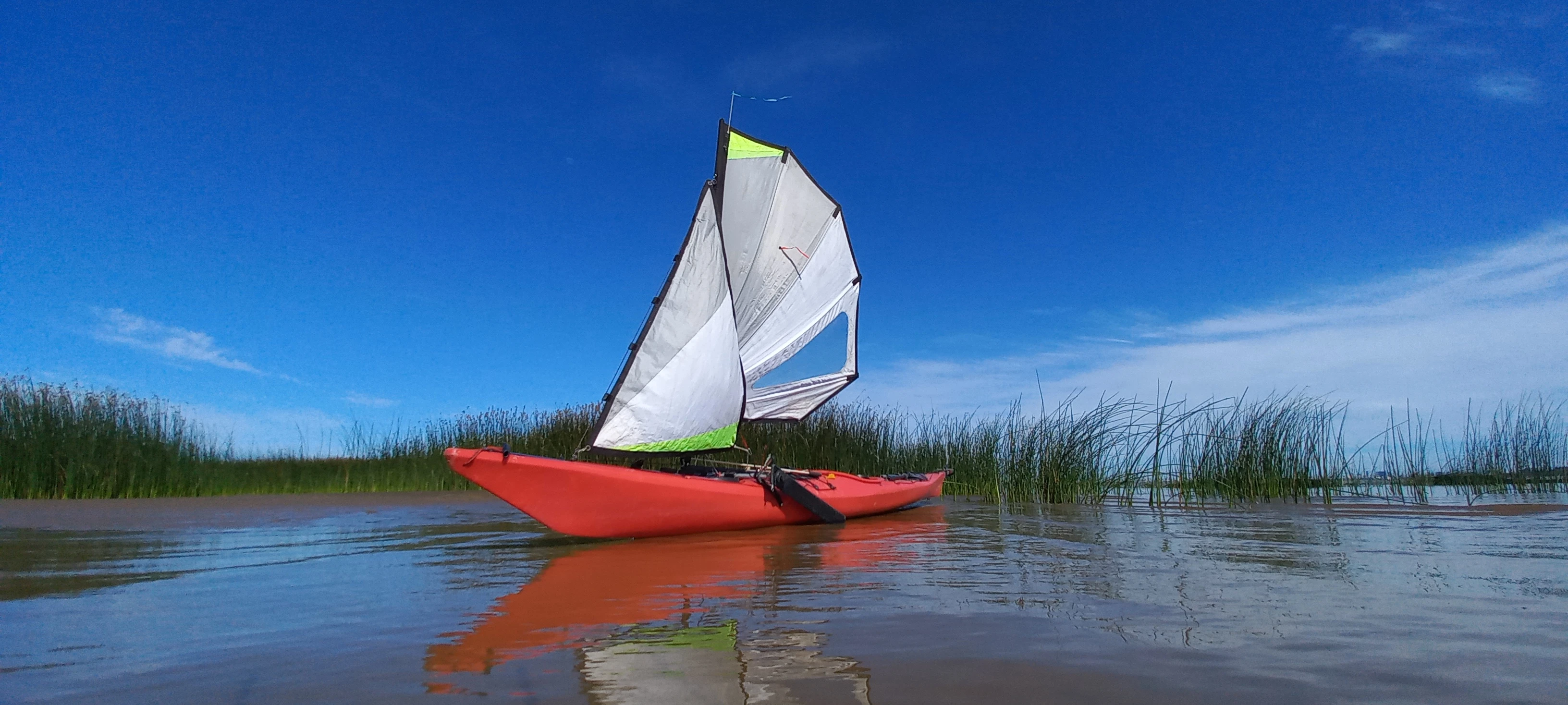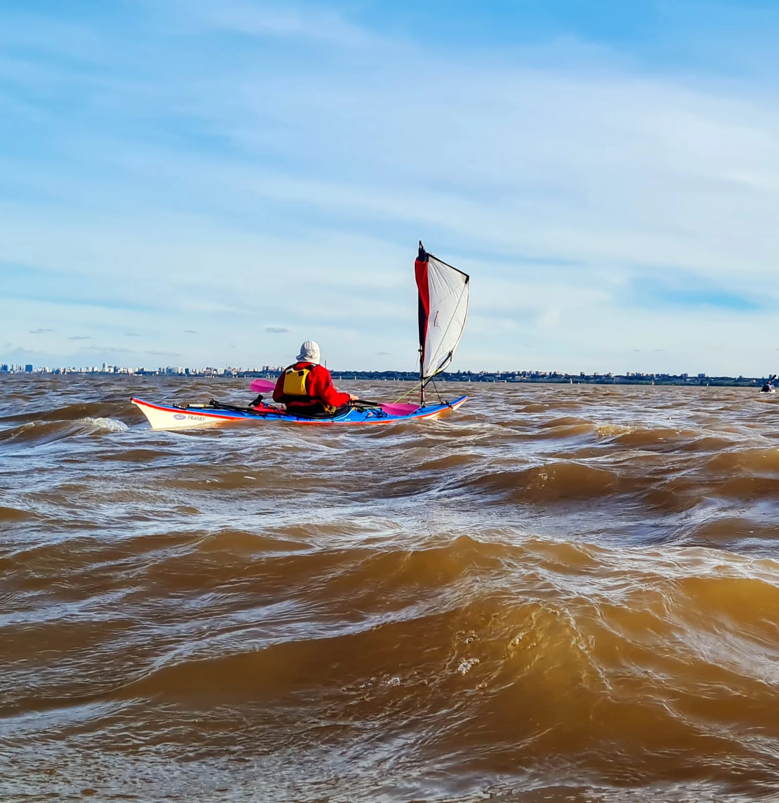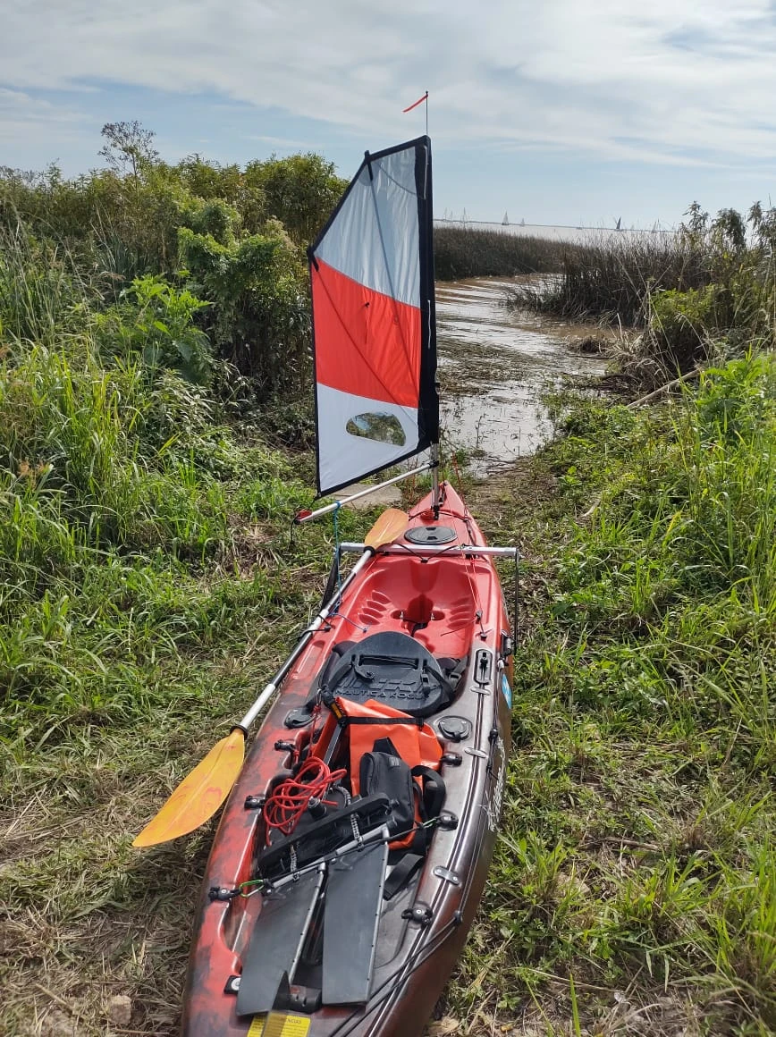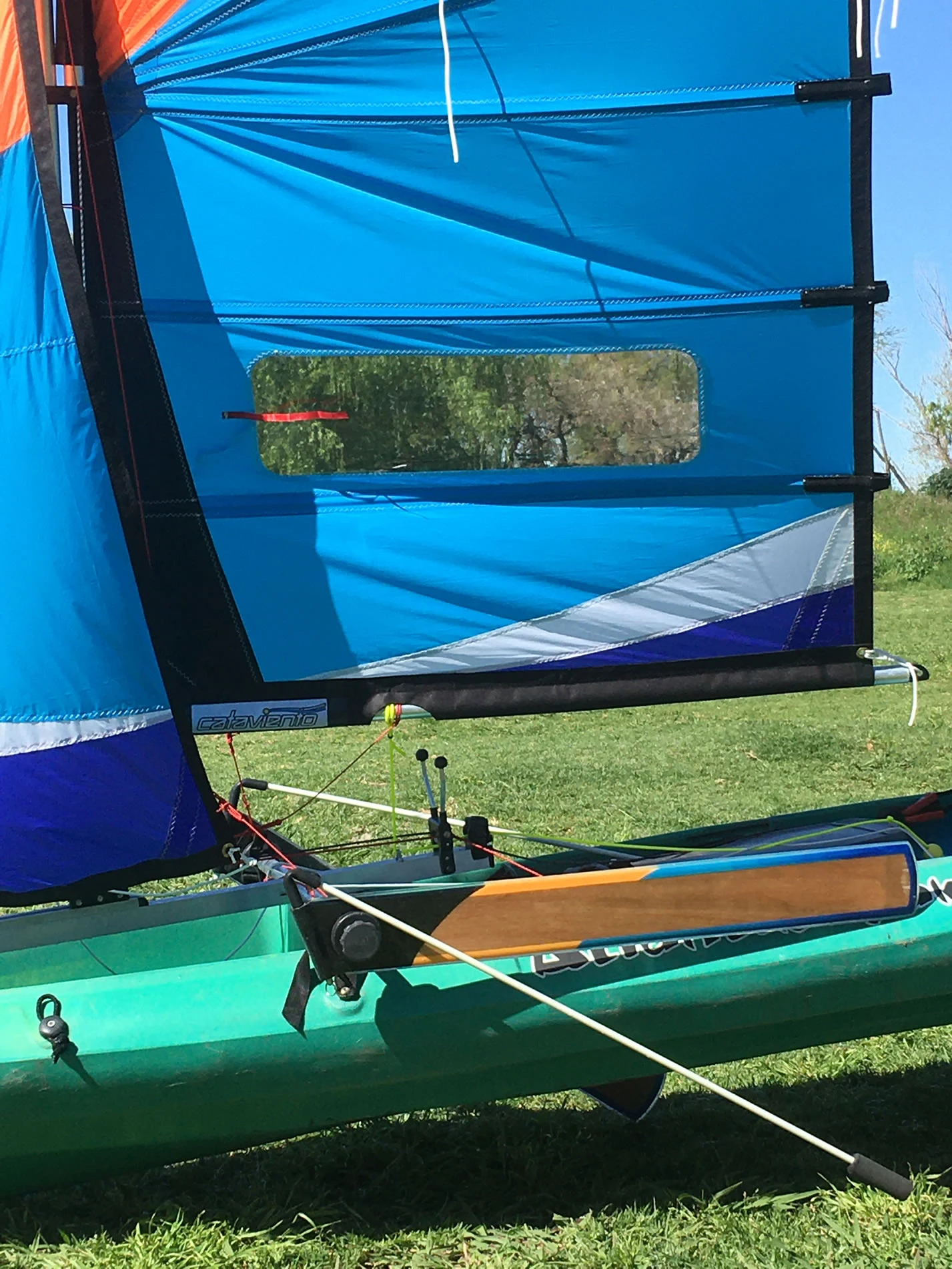 Sistema de vela y aparejo retráctil para embarcaciones de remo.Fácilmente adaptable a cualquier tipo de kayak.Tres simples pasos para navegar en todos los rumbos.